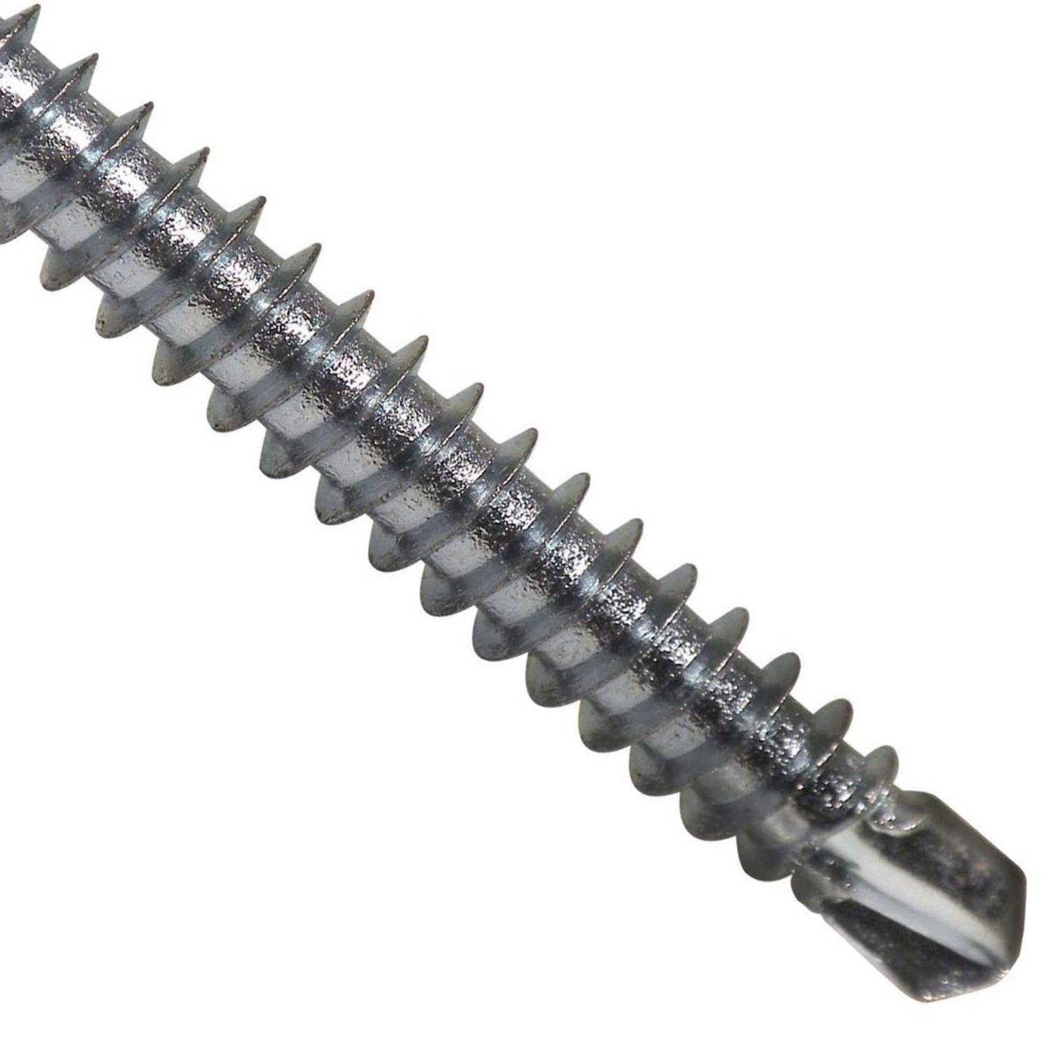 - El Tornillo Autoperforante Cabeza de Lenteja #8 x 1 1/4″ Ranura Phillips #2 de Mamut perfora láminas de hasta 3 mm de espesor.