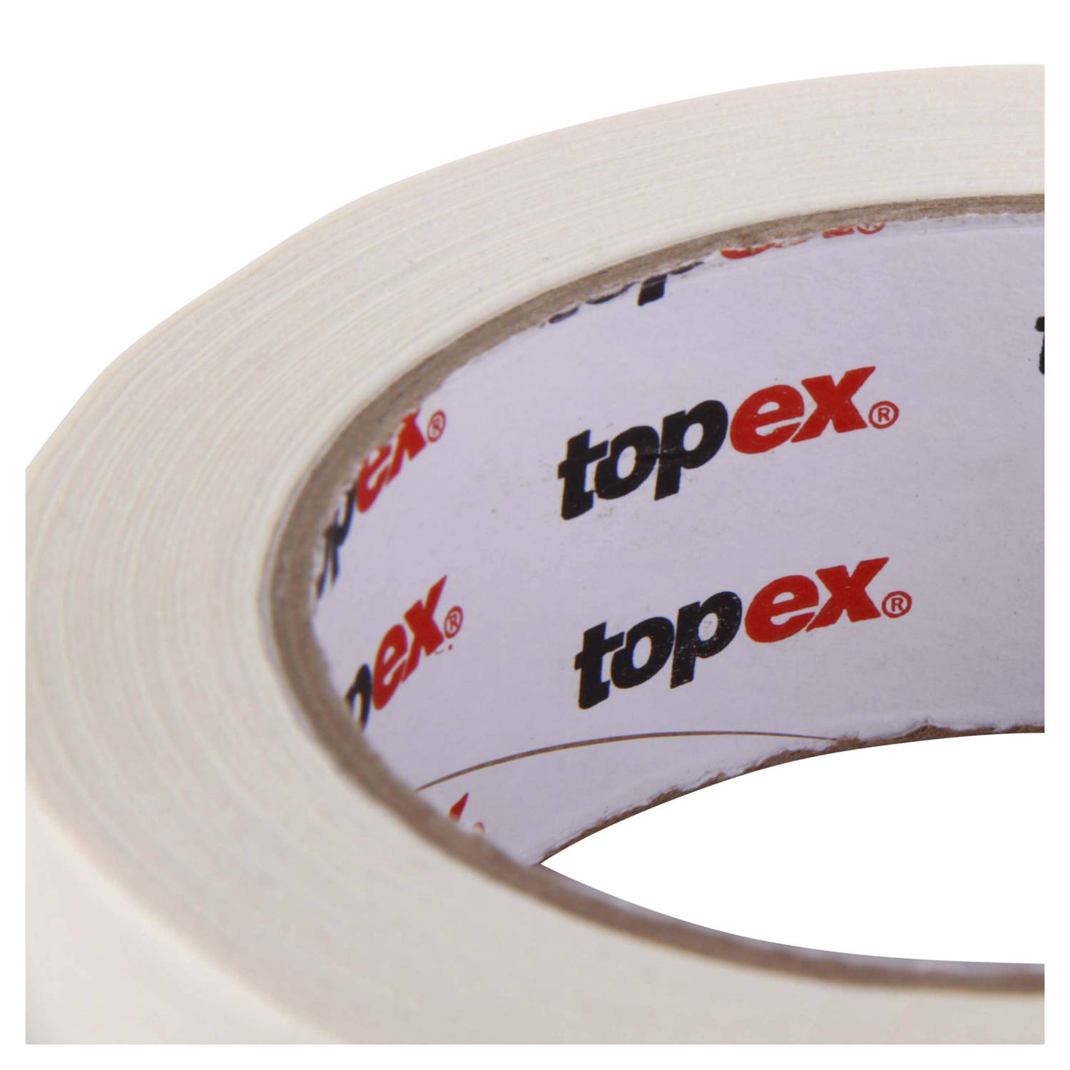 Características Cinta de Enmascarar Topex: Es de 48 mm, fácil de manipular y se aplica fácilmente. No deja residuos ni transfiere adhesivo al retirarla incluso hasta 7 días después de aplicarla.