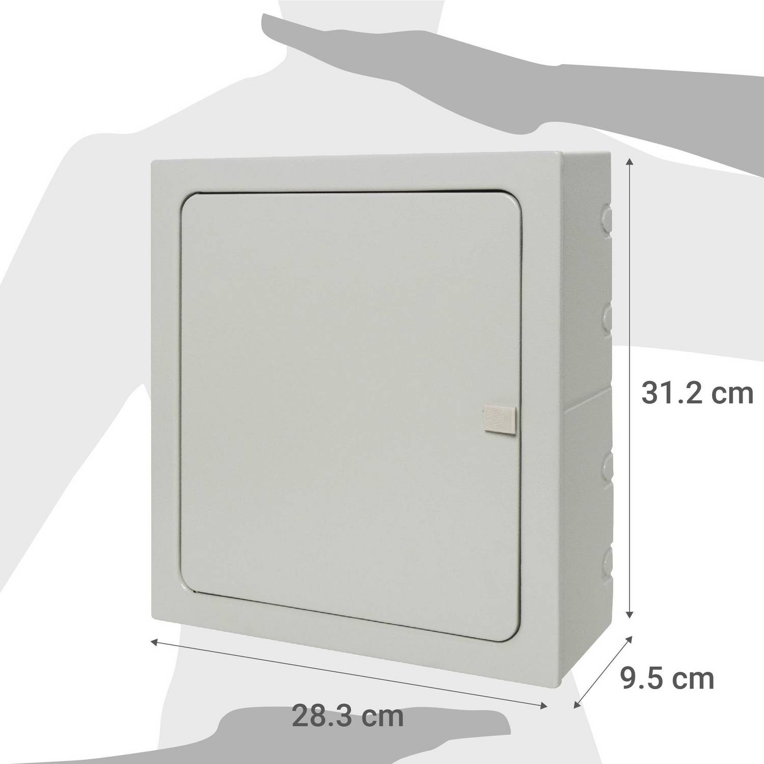 Tapa y Puerta metálica con tratamiento anticorrosivo y pintura electroestática Ral 7032;Chasis porta interruptores Inyectado en termoplástico autoextinguible a 960° y libre de halógenos, con alta rigidez dieléctrica;Grado de protección IP 41;Para montaje de dispositivos enganche Din, interruptores termomagnéticos, protectores diferenciales, borneras, elementos de control y comando;Incluye bornes de conexión y falso polo;En cara superior e inferior 1 acometida precizallada concéntrica de diámetro admisible de 16 y 37 mm. 4 acometidas precizalladas concéntricas de diámetros admisibles de 14 y 22 mm, en caras laterales 4 acometidas precizalladas concéntricas de diámetros admisibles de 14 y 22 mm